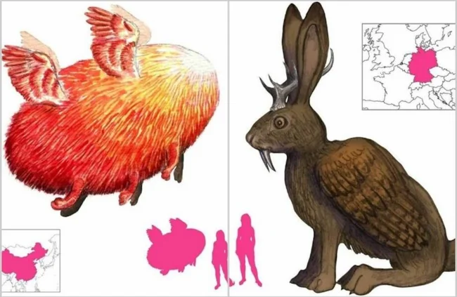 By the way, the German beer brand Wolpertinger is named after this horned bunny with fangs.