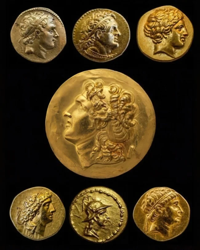 24. The medallion depicts Alexander the Great and gold coins were used by Hellenistic kings during their reign
