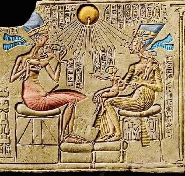 Here Akhenaten, Nefertiti and their children are depicted worshiping Aten.