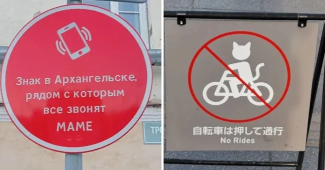 We have collected for you several cases where people encountered very strange signs and hastened to share their bewilderment with the entire Internet. And remember three important things: 1) beware of fairies; 2) don't ride a bike if you're a cat; 3) call your mom more often.