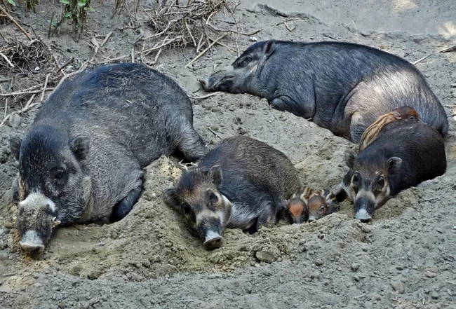 All the photographs in this article feature zoo pigs. It is almost impossible to photograph them in the wild.