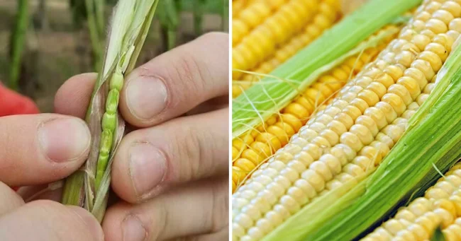 The ancestor of modern corn is the teosinte plant. One can only imagine how much work it took for breeders to get from this thin stalk to the modern head of corn.
