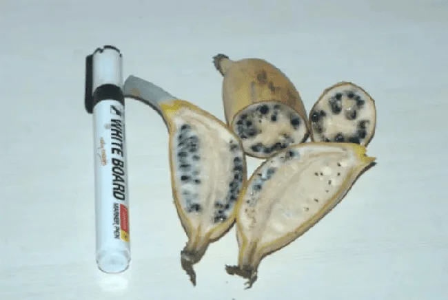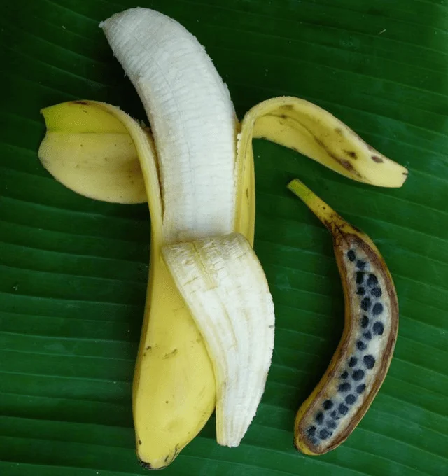 The banana is the most impressive example of selective breeding. The ancestors of the banana are considered to be Musa acuminata and Musa balbisiana. They are distinguished by their much smaller size and abundance of seeds.