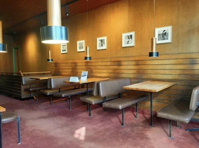 11. There are shadows on the walls of this old cafe, marking the places where people used to sit.