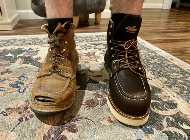 7. These are the same boots, but one is new, and the other is six years old with almost continuous wear.