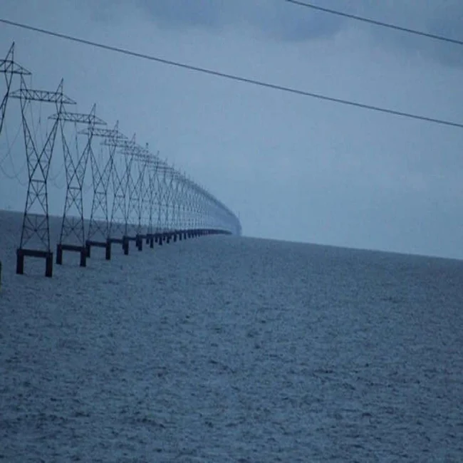 23. Power lines on Lake Pontchartrain, Louisiana, USA, simply and clearly demonstrate the sphericity of the Earth