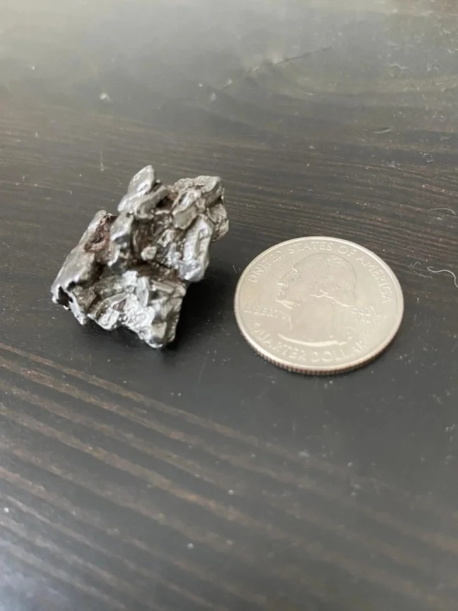 14. And while we're on the subject of meteorites, here's what a tiny meteorite looks like next to an American quarter.
