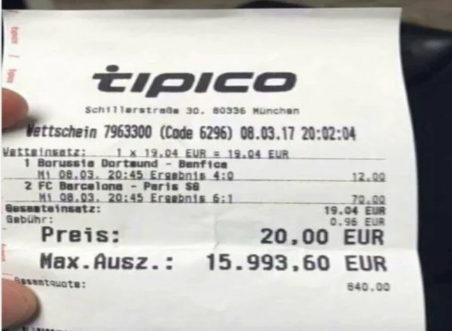 A fan bet $20 and won almost $16,000 by guessing the exact outcome of the match