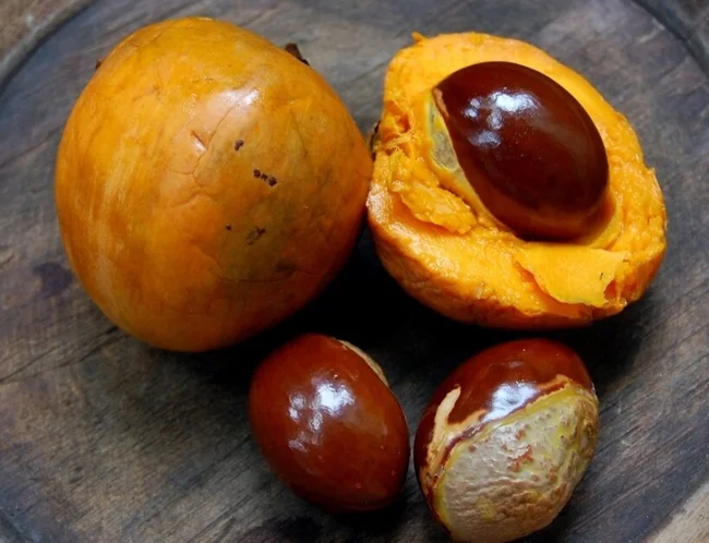 This fruit can be tasted in Mexico, Guatemala, Belize and El Salvador. It grows on an evergreen tree that can reach a height of 8 meters. It is interesting that the canistel can be of completely different shapes: round, oval, heart-shaped, and the color can vary from pale yellow to orange. The pulp of the fruit is mealy and sweetish, but locals eat canistel not only as a dessert or topping for ice cream, but also as a side dish for meat dishes, baking it in the oven like potatoes.