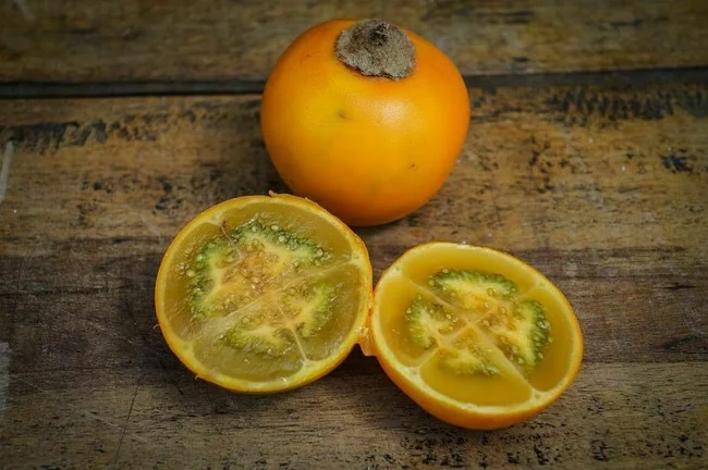 This small fruit is native to South America, and there, in Colombia or Brazil, everything is prepared from it: from fruit salads to yogurts and ice cream. Lulo, as it is also called, looks like a yellow hairy orange, but inside it looks more like an unripe green tomato. Naranjilla tastes like a mixture of fruits and berries such as lime, strawberry and pineapple.