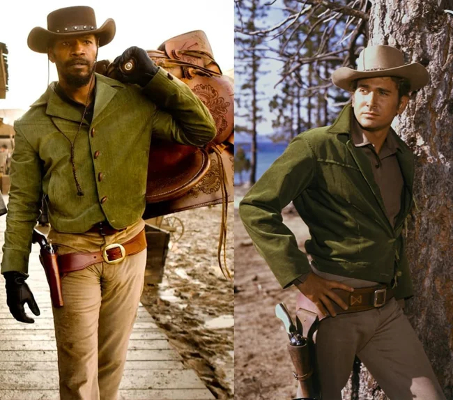 Jamie Foxx's costume from the movie "Django Unchained" (2012) is inspired by Michael Landon's costume from the TV series "Bonanza" (1959-1973)