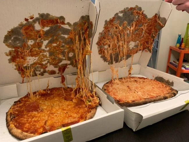 Apparently these pizzas were delivered to us upside down