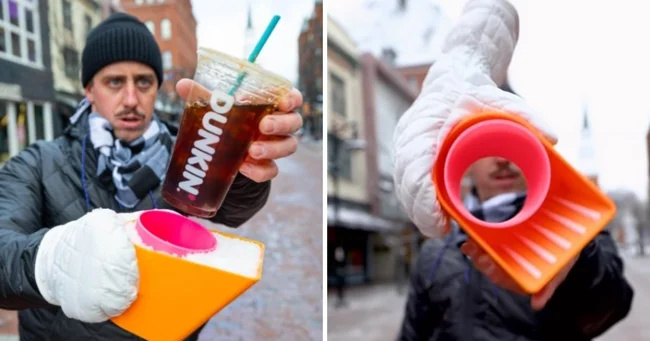 The world's first and only mitten that will help warm your hand while your coffee cools