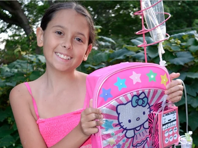 11-year-old Kylie Symonds is a survivor of rhabdomyosarcoma, the most common type of soft tissue cancer in children. She managed to defeat the disease, and now the girl is in remission after 46 weeks of chemotherapy. During one lesson at school, she was given homework - to invent a thing that would solve some problem. And the girl invented a backpack for IVs. She placed a device with medicine in a school backpack so that sick children would not have to constantly be under a stationary drip. With such a backpack, a child can move around calmly, even with an IV. The girl made her invention together with her parents and after consulting with doctors. She received four awards for her invention.