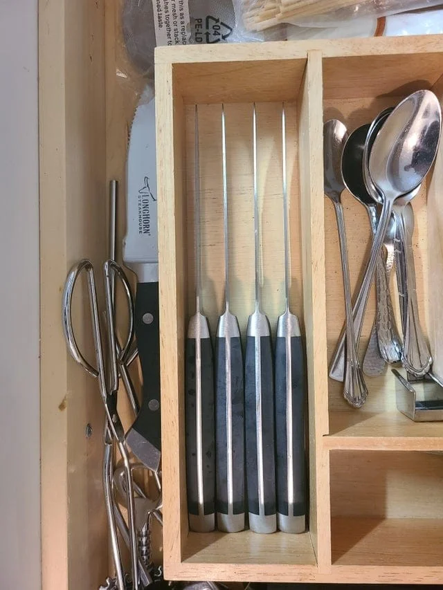 But I didn’t choose knives based on the principle of “fitting perfectly into the compartment.”