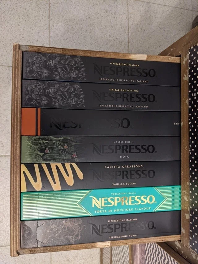 Packages of capsules for the coffee machine fit perfectly into the compartment of my kitchen drawer