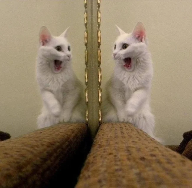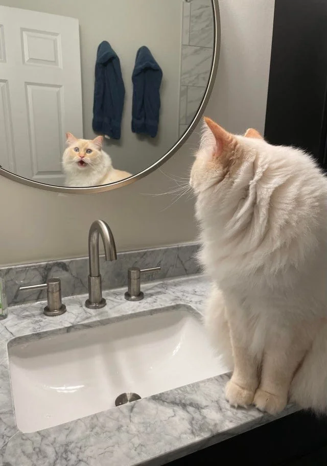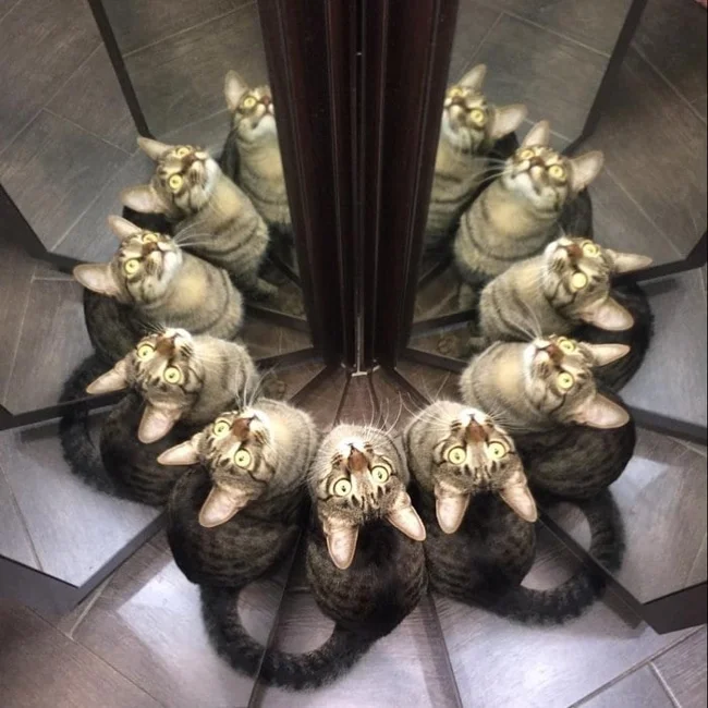 It seems that the animals are similar to their owners in everything. That's why some cats love to admire themselves in the mirror. Well, how can you not look at such luxurious mustaches and fluffy cheeks? Other cats seem to ignore reflective surfaces, but this does not at all save them from comical situations.