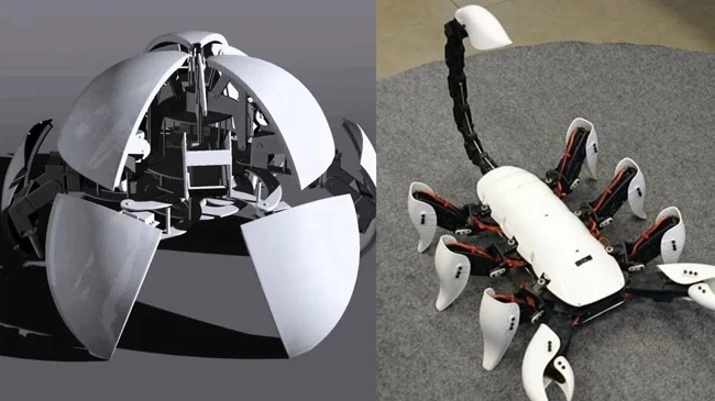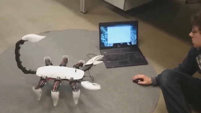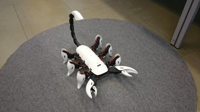 You have to see it to believe it. This is one of the most unique and terrifying robots. Students at Ghent University in Belgium designed and created a 3D printed scorpion that demonstrates the intuitive and complex mechatronic functionality of flower compression technology. The robot, like its animal counterpart, can even strike with its tail. Designed with six legs that move in all directions and an extendable tail, it leaves a small red mark on its victims. Scientists wanted to create a digitally designed robot with multiple capabilities. The scorpion was the inspiration because the tail and claws provide unique functionality not found in any other animal. What do you think? Would you like to be close to this giant scorpion?