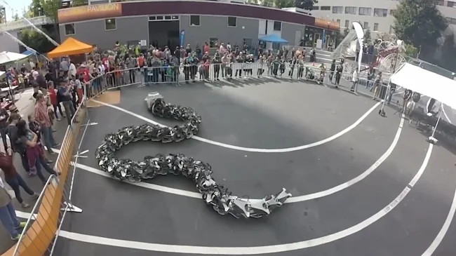 It took a team of more than 30 people more than a year to create such a robot. Lightweight welded aluminum vertebrae and 60 hydraulic cylinders that act like muscles interact with seven microcontrollers that act as the robot's brain. These components, along with wires, tubing and hydraulic oil, allow the creature to move like a slithering snake, much like the real snake it is modeled after. The robot may be a far cry from the creature that terrorized the Earth 60 million years ago, but it's still incredibly cool and amazes people.