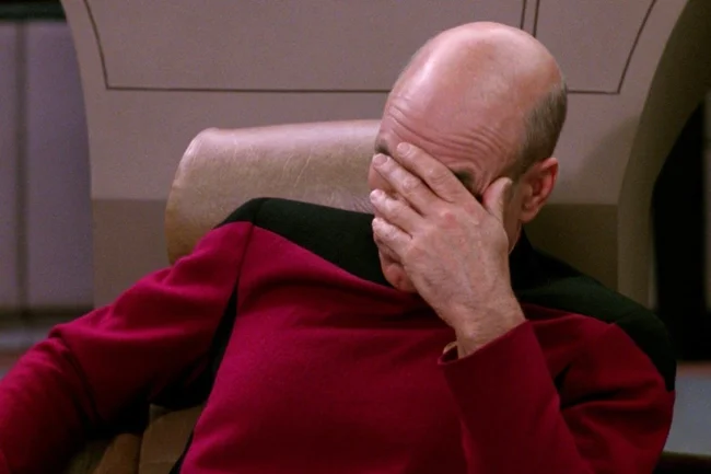 Patrick Stewart's character simply put his hand to his face, and ended up becoming the main character of memes about stupidity. Facepalm or hand gesture is used when you need to somehow react to absurdity or stupidity.