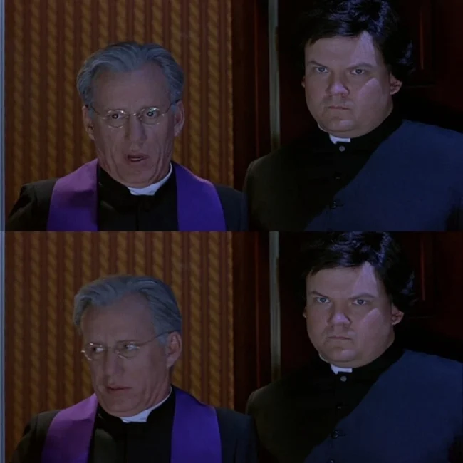 In the story, the priests came to exorcise the demon from the girl, but they were scared when they saw the possessed woman. When is this meme used? When you need to react to something really nasty or scary.