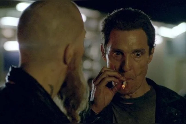 Matthew McConaughey puffing on a cigarette with a wild look in his eyes is the perfect reaction to shocking and terrible news.