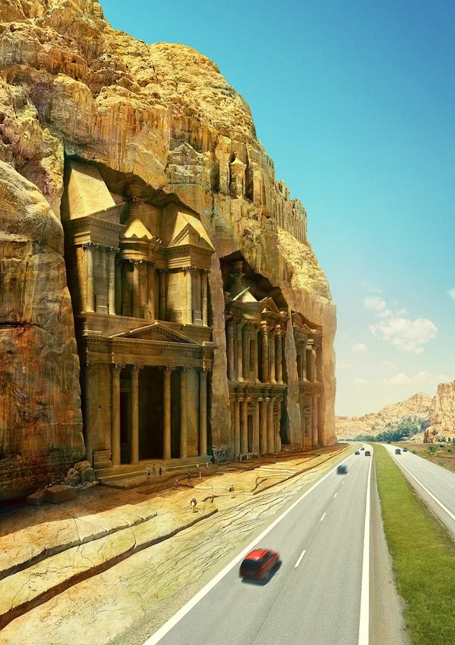 Fortunately, this idea has already been visualized by an artist from Anapa, Evgeny Kazantsev. In his illustrations, ancient monuments familiar to us all coexist with modern cities and other infrastructure of the 21st century.