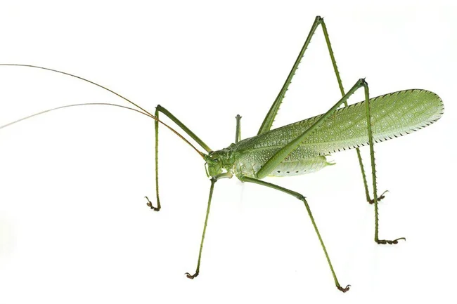 Although most grasshoppers are herbivores and feed on leaves, this species (Copiphora longicauda) uses its powerful, sharp jaws to hunt insects and other invertebrates. (Photo by Piotr Naskrecki | Conservation International):