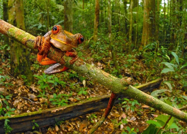 This tree frog is one of six new frog species discovered by scientists in Suriname. (Photo by Stuart V Nielsen | Conservation International):