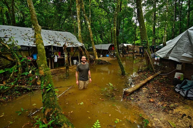 A scientific camp flooded due to rain in southeastern Suriname. (Photo by Trond Larsen | Conservation International):