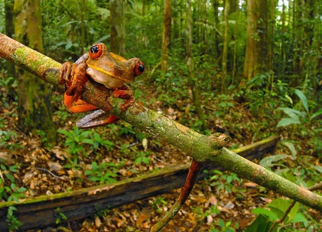 The tree frog (Hypsiboas Sp.), like other amphibians, has semi-permeable skin, which makes it very sensitive to changes in the environment (climate, water availability). (Photo by Piotr Naskrecki | Conservation International):