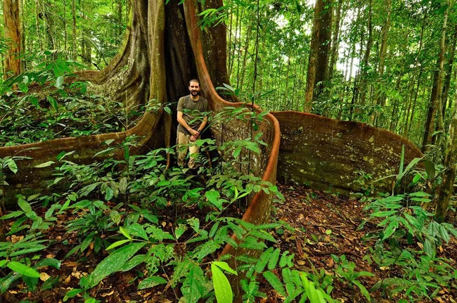 The amaranth tree (Peltogyne venosa) has massive roots that provide it with support, especially during extreme storms and floods. (Photo by Trond Larsen | Conservation International):