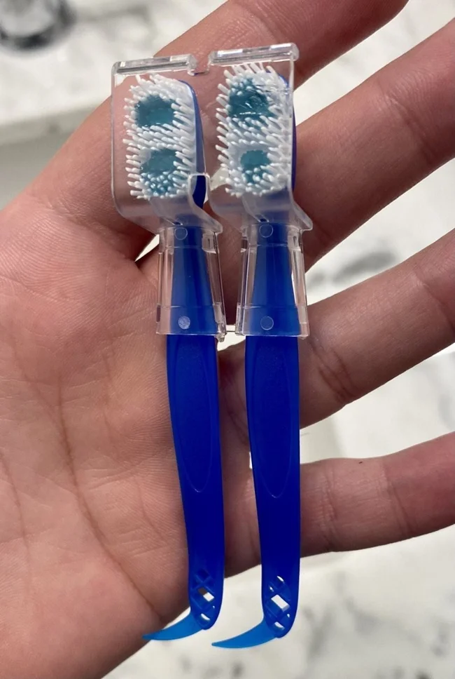 Disposable toothbrushes with a pre-prepared portion of toothpaste inside