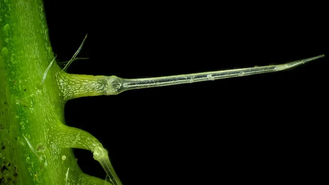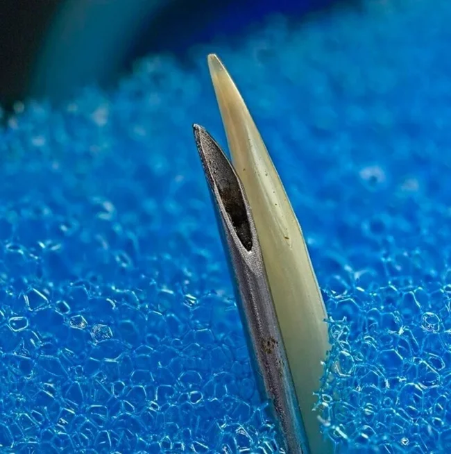13. Comparison of the sharpness of a snake tooth and a syringe needle