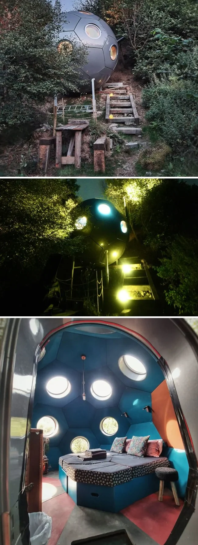 32. A unique capsule in the trees on the river bank. Llanafan Fawr, Wales, UK