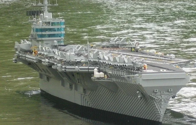 German resident Moll Hawking, a big Lego fan, created a copy of the American aircraft carrier Harry Truman. It took him approximately 200 thousand cubes to create this incredible model. The length of the aircraft carrier is 4.5 m, and its weight is as much as 158 kg! The man repeated not only the external, but also the internal appearance of the aircraft carrier. So, he added models of working electric light bulbs, installed moving elevators and radars. Half of a submarine and an artillery boat float next to the aircraft carrier