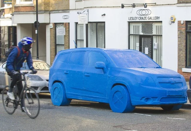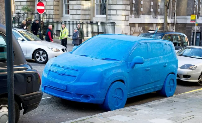 The Chevrolet company created a life-size model of the car from plasticine. The machine, which took 1.5 tons of play-doh to create, was created by hand by a team of eight people in 2 weeks. A blue sculpture has appeared on the streets of London to mark the start of sales of the Chevrolet Orlando in the UK. You can only imagine how surprised people were when they saw this incredible plasticine car.