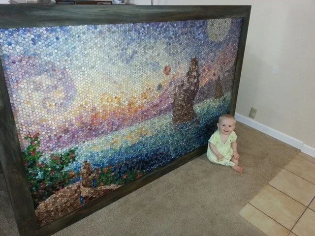 Lacey Cadsen spends her free time creating masterpieces from play-doh mosaics. The woman takes plasticine of different colors and forms small balls from it, and then glues them to the base. It took Lacey 6 months and 152 buckets of plasticine to create her most famous mosaic, called Ondine, consisting of 12,191 fragments.