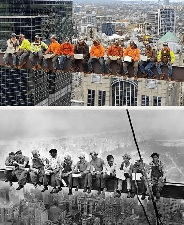 Bonus: Workers have recreated the iconic 1932 photo “Lunch at the Top of a Skyscraper.” ![]()