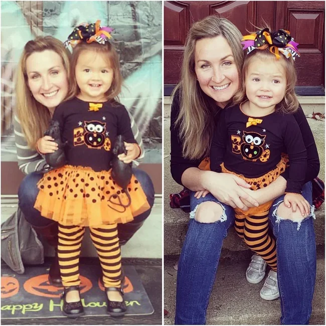 Mom with her eldest daughter (2013) and with her youngest daughter (2020)