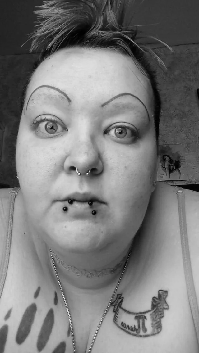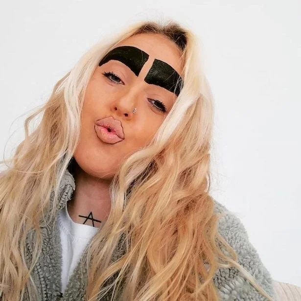 This girl's name is Sammy-Jo Haleford, and she truly has some of the widest eyebrows in the world. An unusual fashionista lives in the UK.