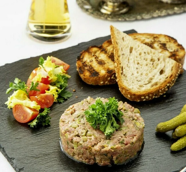 Germany also has its own strange sandwich - tartare, and it is made from raw minced meat. Usually an egg (also raw), onions, herbs, gherkins, salt and pepper are added to it. Tartar is served on a piece of bread, often with French fries.