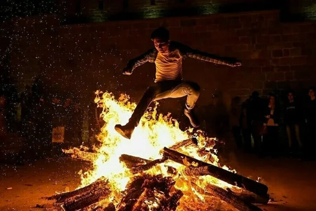 In Iran, before Nowruz (the day of the beginning of the new year according to the astronomical solar calendar), the Chaharshanbe-Suri holiday is celebrated. It dates back to pre-Islamic times, and is celebrated with real fire in the streets. Bonfires are lit near houses, and festival participants jump over the flames.