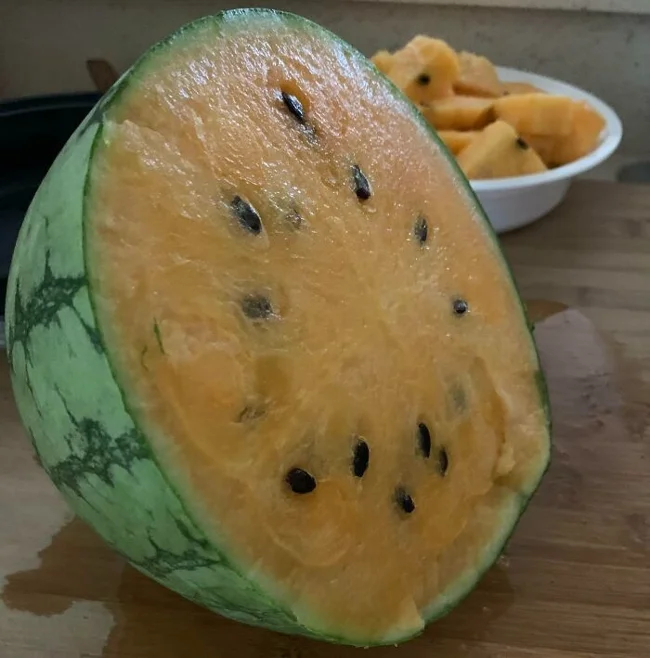 Yellow watermelon. It's ripe, just yellow