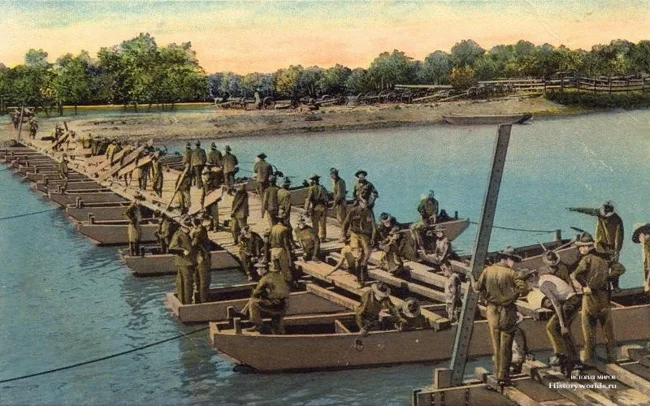 Roman engineering was basically synonymous with military engineering. Those roads for which they are so famous were built not so much for everyday use (though they were certainly useful for that) but for legions to quickly march into the countryside, get into trouble spots and get out again. Roman-designed pontoon bridges, built mainly during wars, served the same purpose. In 55 BC. Julius Caesar built a pontoon bridge about 400 meters long to cross the Rhine River, which was traditionally considered beyond the reach of Roman power by the Germanic tribes.