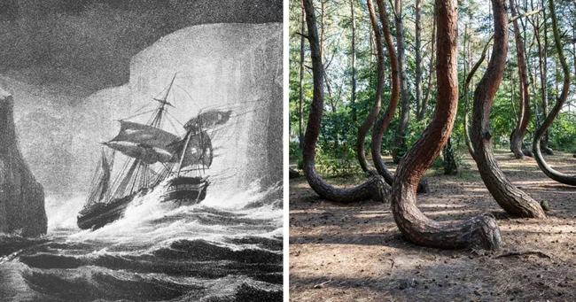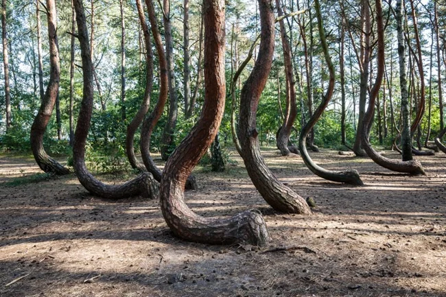 In the Polish city of Gryfino there is a very unusual forest - almost 400 trees have trunks that are twisted as if they are “bending the knee.” The trees are neatly lined up in rows and all “bow” in the same direction. The trees are believed to have been planted in the 1930s.