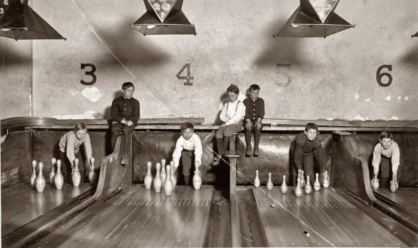 Before bowling clubs had special devices that set pins, this work was done by children and teenagers for a fairly modest fee.