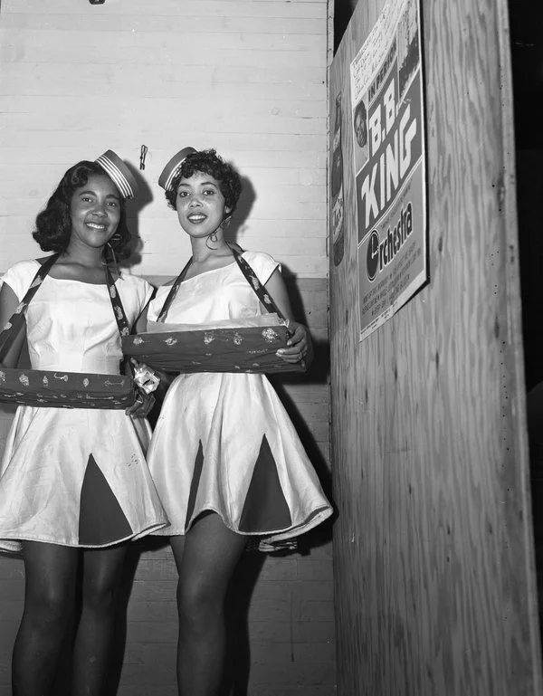 Cigarette or cigar girls have worked in American bars and clubs since the 1920s. They usually wore a hat and a tray around their neck with a selection of cigarettes that visitors could buy.