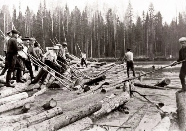 In the 19th century, felled trees were floated down rivers to sawmills. Rafters helped deliver them safe and sound. They walked along the shore with long sticks and guided the logs, and also removed various obstacles from their path. By the beginning of the 20th century, the profession had faded with the advent of the railroad and portable sawmills.