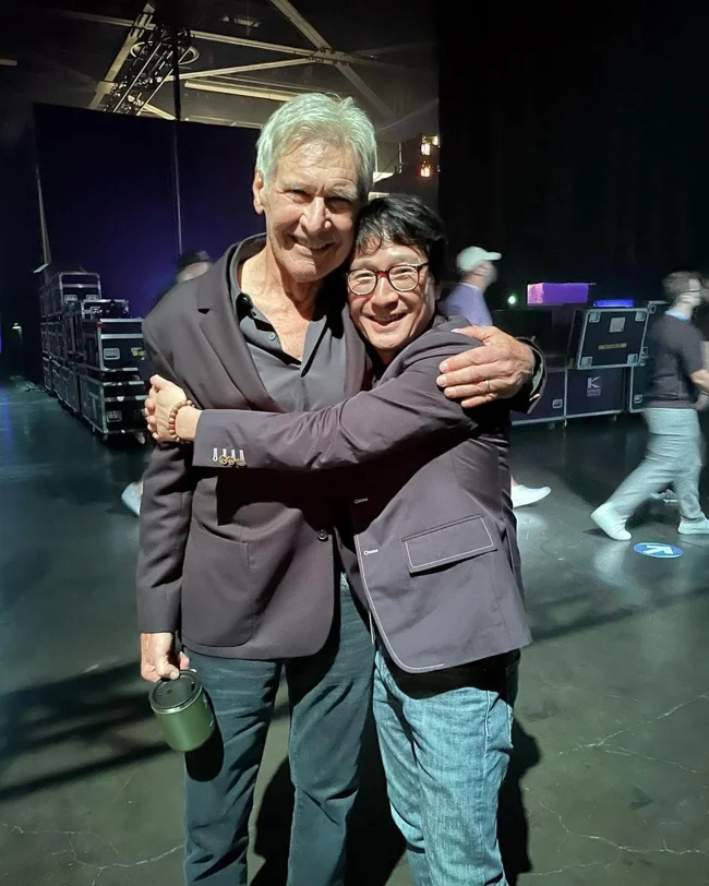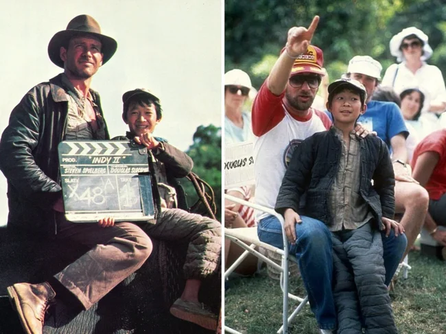 The last two photographs are especially valuable for the actor, because at the age of 11 Ke Huy Quan starred in the film Indiana Jones and the Temple of Doom (1984) with Ford and under the direction of Spielberg.